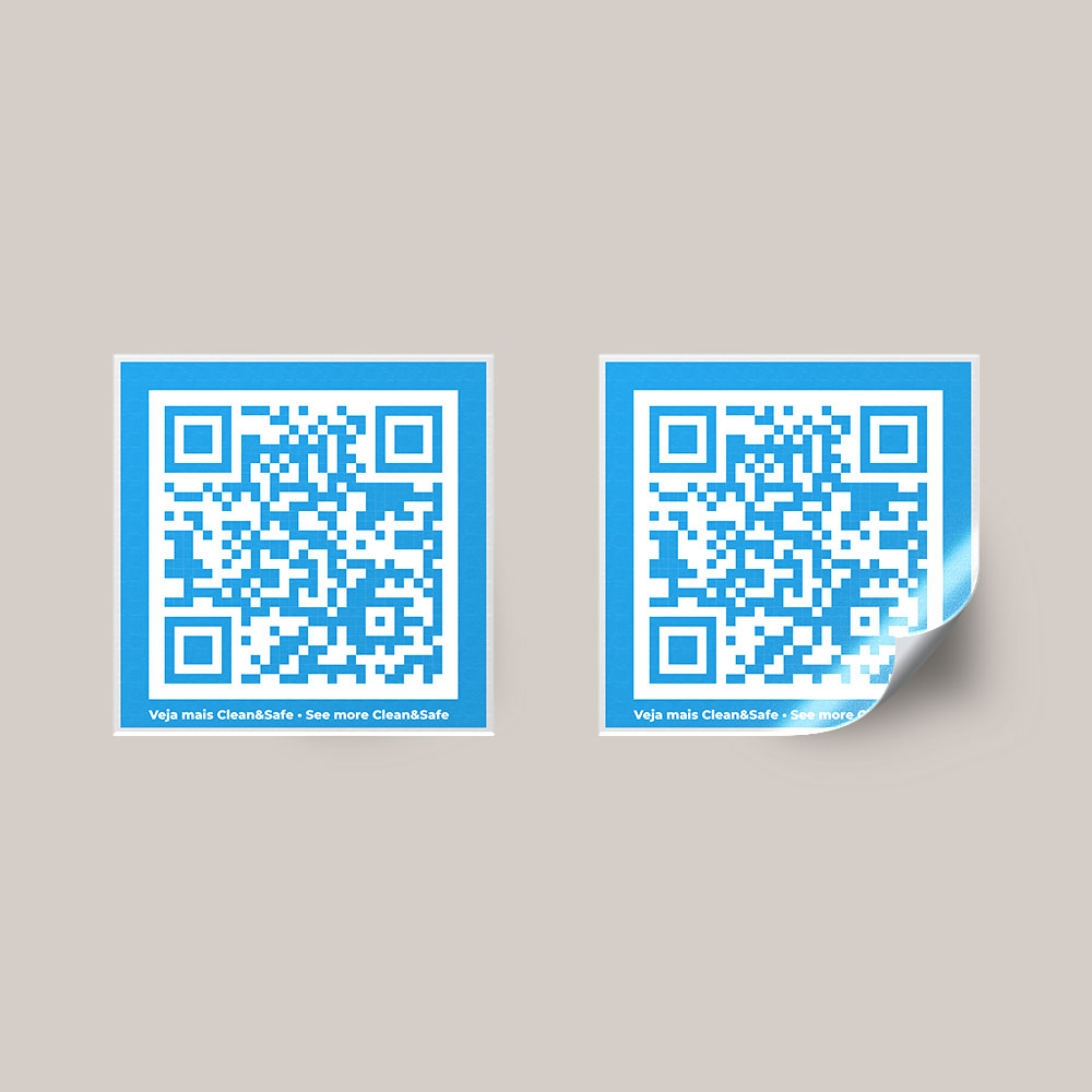 Vinil autocolante QR CODE complemento ao selo Clean&Safe. Os aderentes deverão disponibilizar, nos locais onde ostentam o logotipo do Selo Clean&Safe, o QR CODE que permite o acesso à plataforma www.portugalcleanandsafe.com.