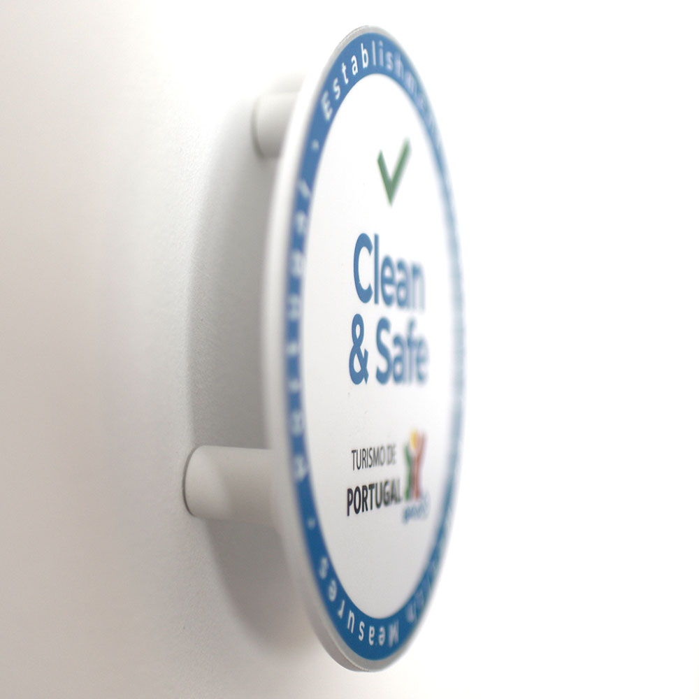 Esta placa, para aderentes do selo Clean&Safe, identifica o seu estabelecimento “Clean and Safe”.